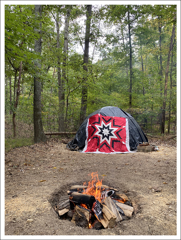 Representing the womb of Mother Earth, the lodge is covered with plastic, blankets, and a tarp to keep the heat and steam from escaping and to create a sacred black light facilitating ‘clear vision’. Outside the lodge, a Sacred Fire is built to heat the rocks. The fire is built in a very sacred manner and is, itself, a very sacred ceremony. Nothing is to be done or added to the fire unless guided to do so by the lodge leader.